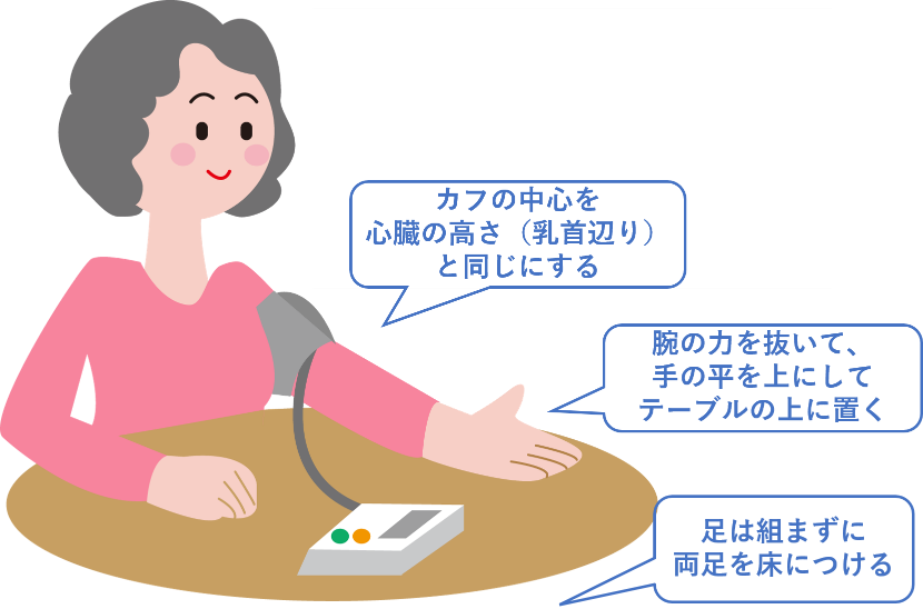 診察室で、安静にした状態から測定します。複数回に分けて測ることが望ましいです。家庭では朝と夜の1日2回の測定が推奨されます。