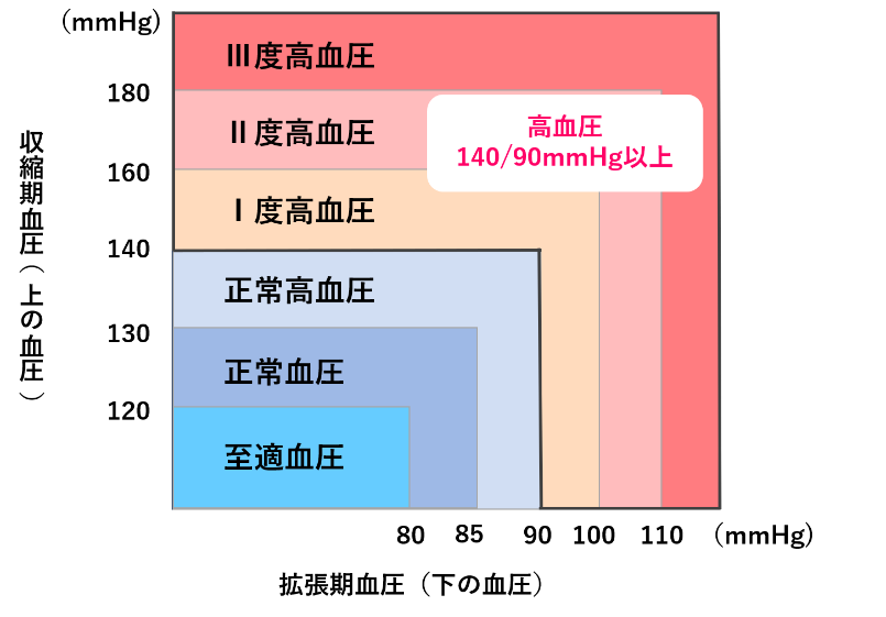 血圧とは、心臓から送り出される血液が血管に与える圧力のことです。血圧が慢性的に高い状態を「高血圧」と呼びます。日本高血圧学会の「高血圧治療ガイドライン2024」によれば、診察室での血圧が収縮期血圧(上の血圧・最高血圧)140mmHg以上、または拡張期血圧(下の血圧・最低血圧)90mmHg以上で、高血圧と診断されます。また、家庭で測定する場合は、135/85mmHg以上が基準となります。